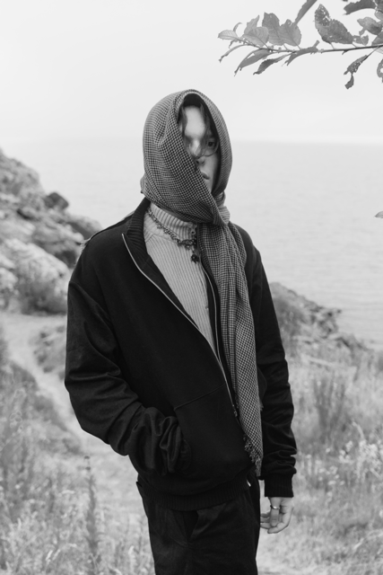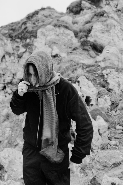 Bei der Präsentation entschied ich mich für zwei Fotoshootings. Für das erste habe ich ein Shooting mit Bengisu Arslan geplant. Sie hat schon andere meiner Klamotten fotografiert und hat eine sehr clean Ästhetik die zu meinem Outfit gepasst hat. Das Shooting zeigte einfache Posen und konzentrierte sich auf die Details des Tracksuits, um einen Eindruck von Schnitt und Silhouette zu vermitteln. Hier habe ich das Outfit auch mit einem Schal kombiniert.